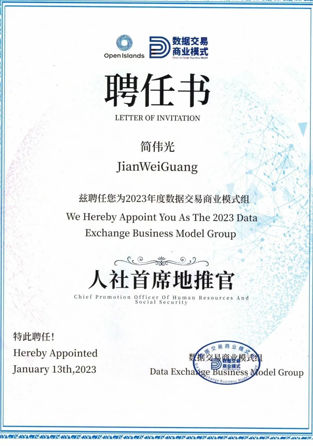 ▲伟德bv1946官网大数据业务部总经理简伟光被聘为人社首席地推官,成为首批中国数据首席地推官之一
