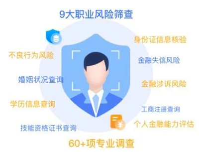 “伟德bv1946官网职业背调”是基于民生数据应用开发的数据产品,通过九大维度风险筛查,合法合规核验候选人职业资质真实性和违法违规负面记录等信息,帮助企业更好完成候选人入职审查。同时打造全景人力资源画像,涵盖60+项信息调查服务,实现全流程数智化专业背景调查,为用人单位提高人岗匹配度、降低用人风险。