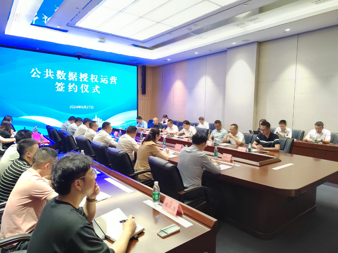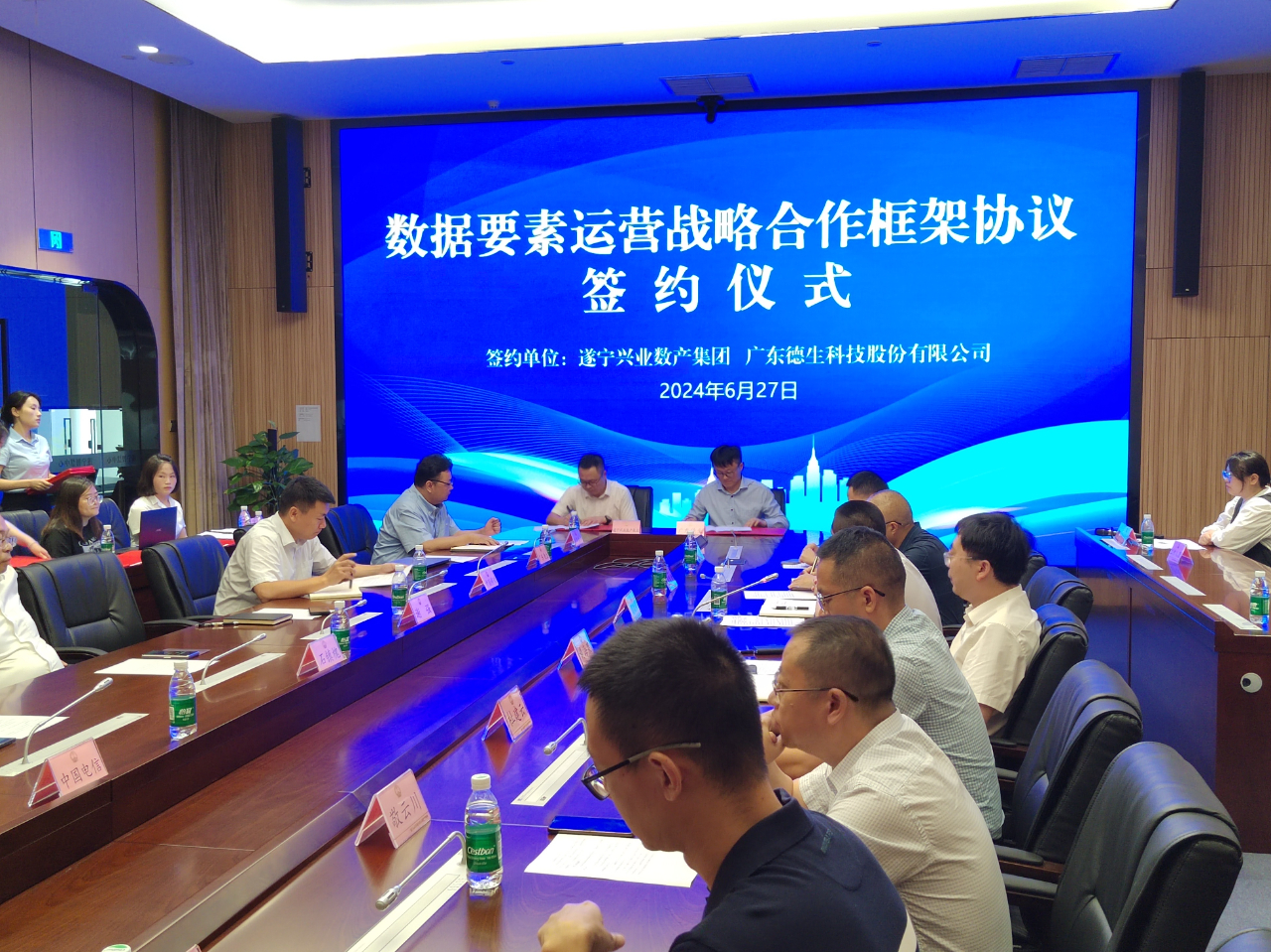 6月27日,遂宁市公共数据授权运营签约仪式在遂宁市民中心圆满举行。遂宁市政务服务和数据局党组书记、局长黄海果,遂宁市政务服务和数据局党组成员、大数据中心主任侯晓辉,遂宁市卫生健康委党委成员、副主任杜建云以及遂宁市国资委、遂宁市人力资源和社会保障局、遂宁市住建局、遂宁兴业数字产业集团等相关领导出席仪式。会上,伟德bv1946官网与遂宁兴业数字产业集团有限责任公司(以下简称“兴业数产集团”)正式签订了数据要素运营战略合作框架协议。