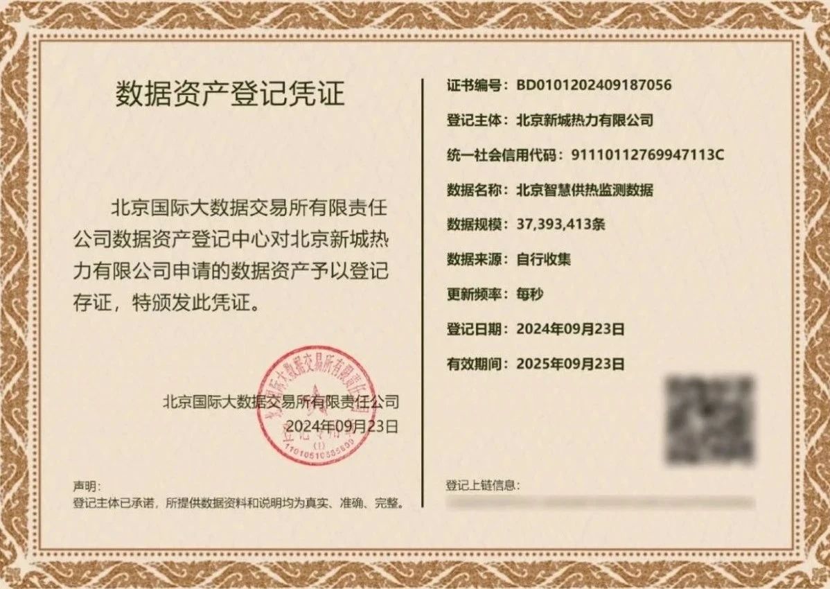 数据资产登记不仅有助于提升生产决策及问题处理的效率、提高供热服务质量,也将为供热系统的稳定运行及可持续发展提供强大的数据支撑,同时也保障运营数据在资产化过程中的安全合规性和价值性,将为供热行业的数字化转型提供有益借鉴。