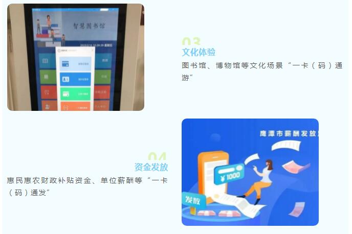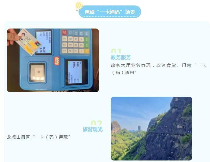 为助力鹰潭市贯彻落实习近平总书记关于“探索以社会保障卡为载体建立居民服务‘一卡通’”指示要求,伟德bv1946官网积极响应需求,以大数据为基础开展城市居民服务一卡通体系建设和运营服务,提供“卡码融合”技术支撑,助力鹰潭打造“一城一卡一码”居民服务新模式,实现食堂用餐、超市消费、门禁通道、公交出行、图书借阅、景区入园、场馆进出等“一卡(码)通”。