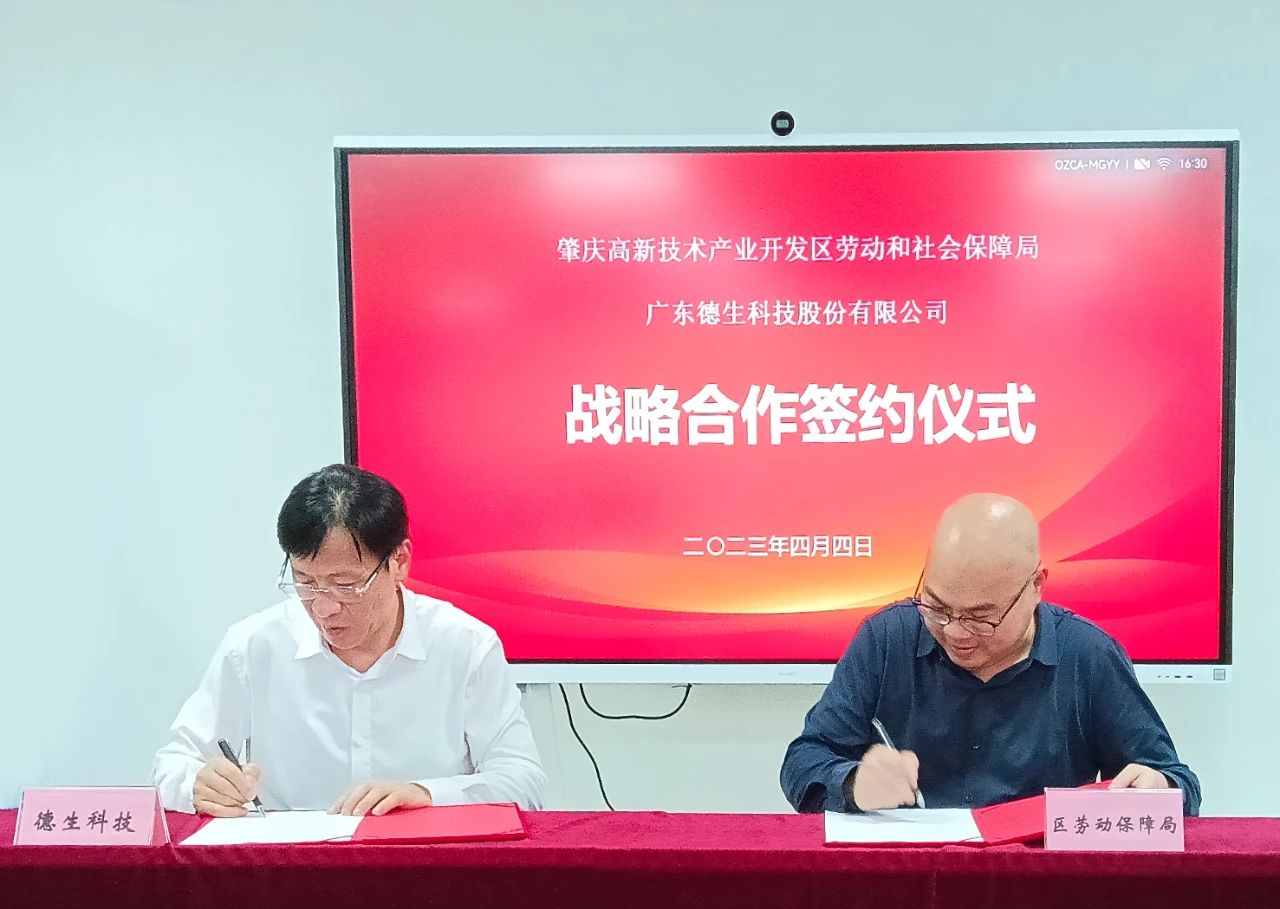2023年4月4日,广东省肇庆高新区劳动和社会保障局和伟德bv1946官网签订战略合作协议。伟德bv1946官网董事长兼总经理虢晓彬和肇庆高新区劳动和社会保障局局长龚志宏代表双方进行签约。未来,双方将在社会保障卡居民服务一卡通、人力资源服务等领域展开深入合作 。